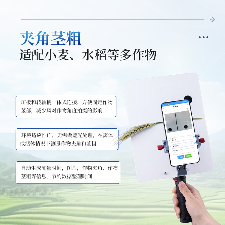 3)夹角茎粗测量仪适配小麦、水稻等多作物,快速获取茎秆形态参数;