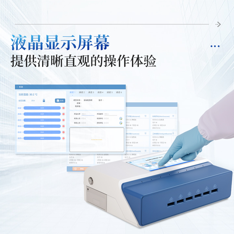 11、检测时间:< 5秒 (单卡及多联卡);可对样本进行胶体金定性/半定量检测。